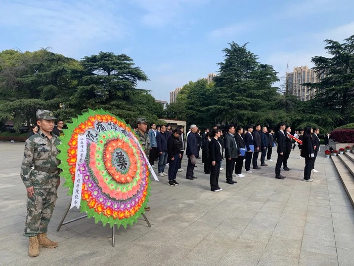 “魂兮归来,嘉名孔彰;魂兮归来,万古流芳。……人民英雄永垂不朽!”江理工学生代表致悼词,退役大学生代表向革命先烈敬献花圈,全体人员面向革命烈士纪念碑行鞠躬礼,祭英雄、致哀思。