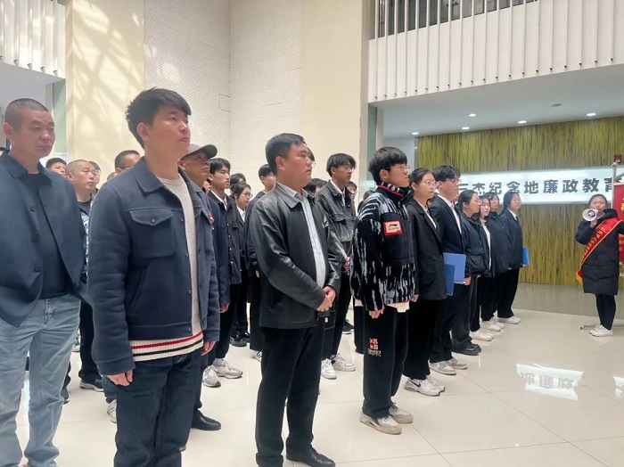 在学生党员代表谈志东的带领下,全体党员面向党旗,重温入党誓词,回望初心、淬炼党性,铿锵的誓言传承了红色基因,凝聚起奋进力量。
