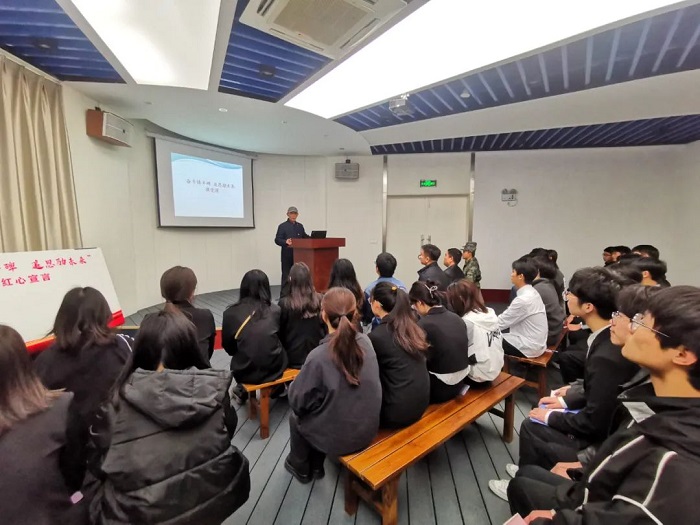 祭扫仪式结束后,全体成员进入三杰厅参观,在厅内,竹园社区退休军人党员许中杰宣讲了自己的军旅生涯和工作经历,勉励同学们追寻先辈足迹、继承先烈遗志,努力学习,报效祖国。“今年是我加入中国人民解放军的第50个年头,那一年我刚满18岁。今天站在这里,我的心情很沉重,也很激动。”退伍不褪色,退休不退志。老先生在宣讲中数度哽咽,感动了在场所有人。退役大学生吴谋祥说:“许老的宣讲是对我一次思想上的洗礼。我要向许老一样永葆军人魂,勤奋学习,追求真知,争做‘树新风、讲奉献’的排头兵,通过实际行动传播文明新风,树立青年一代学好技术、奉献社会的良好文明形象。”