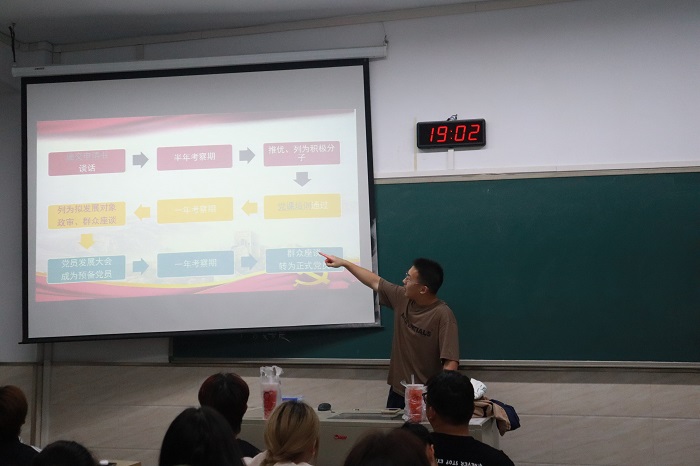活动分为两个阶段,在第一阶段入党启蒙教育中,各位学生党员代表首先强调了端正入党动机的重要性,接着就党员发展程序、入党申请书的撰写规范、推优入党的基本条件等作了详细讲解,并且分享了自己的个人经历,激励同学们青春向党、争先创优,积极向党组织靠拢。