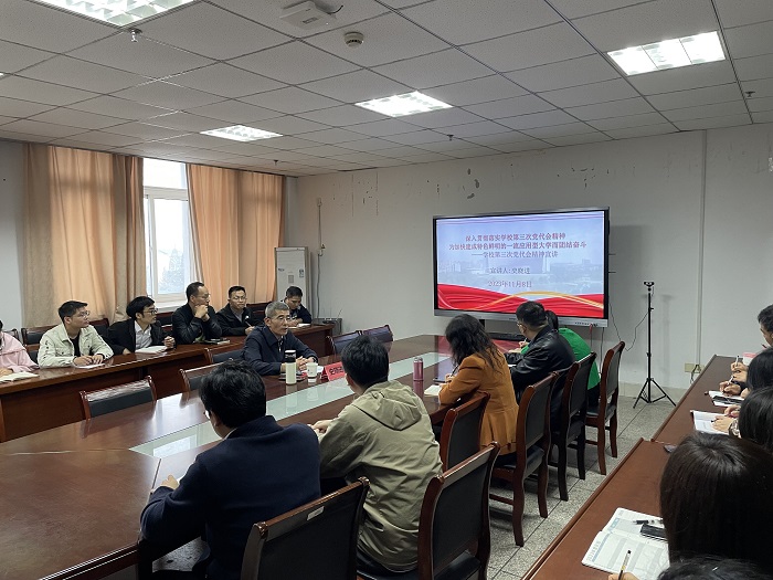 11月9日下午,校党委常委、纪委书记、派驻监察专员史晓进在知行楼512会议室为麻豆做爱 作校第三次党代会精神宣讲,麻豆做爱 全体教职工参加了宣讲会,宣讲会由学院院长卢雅琳主持。