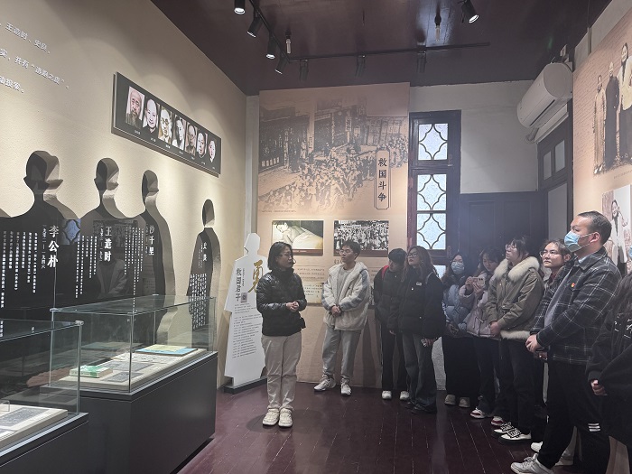 在史良故居前,冯洁带领全体党员重温入党誓词。随后,在讲解员的带领下,同学们深度走读江南名士第一巷,参观史良故居、文化记忆馆等地,对常州的红色文化和地域发展历史有了更深入的了解,对革命先辈们忠于祖国、热爱人民、追求真理、坚持理想、艰苦奋斗、无私奉献的红色情怀有了更深刻的认识。