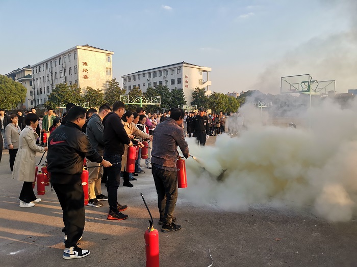 本次培训演练分别对过滤式消防自救呼吸器、灭火毯、灭火器和水带等常用消防器材的使用方法、注意事项进行了详细讲解和示范演示,参训教师在工作人员的指导下使用灭火器和消防水带进行了灭火实战演练。