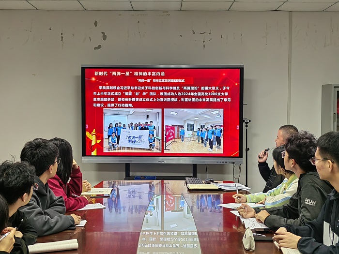 今年是“两弹一星”功勋奖章授勋25周年,占成从央视国庆特别报道《护卫我心中的国,致敬“两弹一星”功勋科学家》和微视频《共产党人的精神谱系-“两弹一星”精神》入手,围绕实现高水平科技自立自强、新时代“两弹一星”精神的丰富内涵、当代青年的历史使命等三方面,领学了习近平总书记关于一体推进教育发展、科技创新、人才培养,实现高水平科技自立自强的相关重要论述,结合麻豆做爱 对“星耀‘才’华”志愿宣讲团的设计思路和工作实践,深入浅出地阐释了新时代“两弹一星”精神的时代内涵和实现路径,勉励全体同学共同参与、共同感悟、共同传承,努力成为新时代科技创新和爱国主义火种的讲述人和播种人。