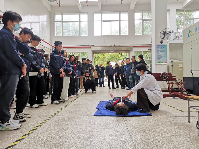 本次演练包含了实验室安全事故逃生疏散,触电心肺复苏和烫伤处置等三个部分。随着警报声响起,消防演练正式拉开帷幕。师生们反应迅速,按照预定疏散路线撤离,各点位工作人员有序引导,确保师生顺利到达安全地带。校医赵艳婷在知行楼125实验室为师生们详细讲解了心肺复苏的基本原理、操作步骤和烫伤处置的注意事项,并现场演示了心肺复苏的全过程。