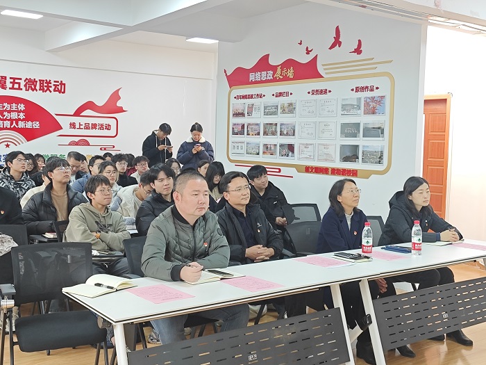 青春年少好读书,挺膺担当正当时。为提升青年党员的思想理论水平和党性修养,营造浓厚学习氛围,以“书香支部”创建引领优良院风、学风建设,12月5日中午,麻豆做爱 学生党支部在“厚德”一站式学生社区网络思政中心开展青年读书会主题党日暨“朗读+”评选大赛成果展示活动。校党委常委、党委宣传部部长王斌、院党委书记张纪霞、院党委副书记兼副院长占成、学生党支部书记徐洁、专职组织员冯洁、辅导员张新栋、全体学生党员及“朗读+”评选大赛获奖学生代表参加了活动,活动由徐洁主持。