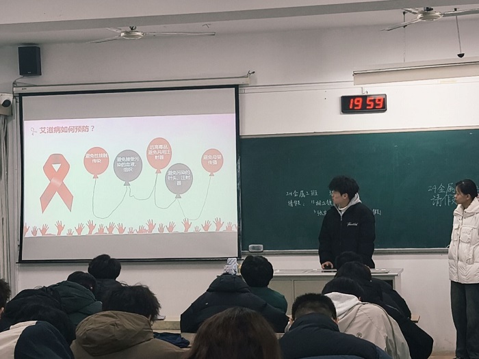 在“预防艾滋病”主题班会上,心理委员通过生动的案例分析和科学的知识讲解,向学生们普及了艾滋病的传播途径、预防措施以及社会关爱等方面的知识。鼓励同学们积极参与艾滋病防治宣传活动,共同营造无歧视的社会环境。