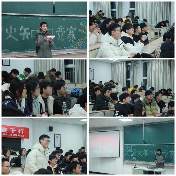 本次知识竞赛主要以党史的基本知识点和时政热点为考察点,分为两个环节。第一轮为抽签答题环节,各组队伍按照抽签顺序依次上台随机抽取题目,参赛选手们思维敏捷、群策群力,展现出了扎实的知识储备和良好的团队协作能力,现场气氛热烈;第二轮为金句抢答环节,赛题以党的奋斗历程中历代领导人对青年学子的殷切寄语为素材,要求各组队伍迅速反应、准确抢答。将现场气氛推向了高潮。经过两轮激烈比赛,活动最终评出优胜团队3个。