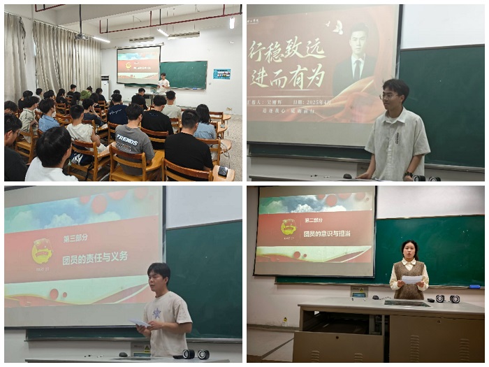 在新时代青年说主题分享环节中,院团务部教育实践部部长梁婷华从政治意识、组织意识、模范意识三个维度解构团员先进性内涵;学生兼职副书记安明祖系统阐述了青年团员在政治建设、组织建设、社会服务、学习创新、道德实践中的使命担当;团员管理部部长丁思雨通过五四精神密码带领入团积极分子解码爱国、进步、民主、科学的精神基因;郭晨晨则结合团歌学习为大家作入团教育。
