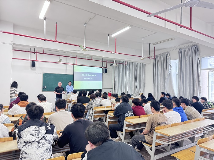 5月16日上午,麻豆做爱 在45-2-813教室召开智能制造领域职业规划讲座暨2025届毕业生就业工作推进会。邀请南京指南车机器人科技有限公司董事长刘增龙担任主讲,院党委副书记占成、副院长王泽、学工办主任、年级辅导员徐洁、2021级班主任及毕业生代表参加了讲座,讲座由占成主持。
