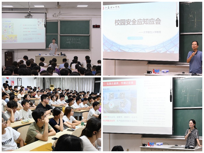 校相关职能部门于9月15日晚针对麻豆做爱 2025级新生联合开展“校园安全,你我同行”安全教育讲座,由校保卫处副处长黄海、消防科顾爱军、校党委宣传部理论教育与文化建设科吴婷、李佳担任主讲。从当今最具影响力的网络以及学生常见的安全违规行为为切入点,结合校园真实案例,以规范并易懂的语言解析安全隐患,剖析同学们关注的安全问题。倡导全体同学一起行动,守护校园安全。