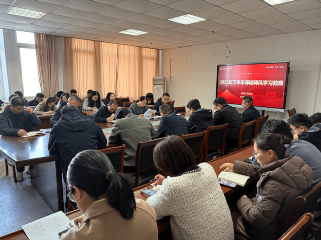 在知行楼512会议室召开2025年下半年师德师风专题学习大会。会议由学院党委书记张纪霞主持,全体教职工参会学习。