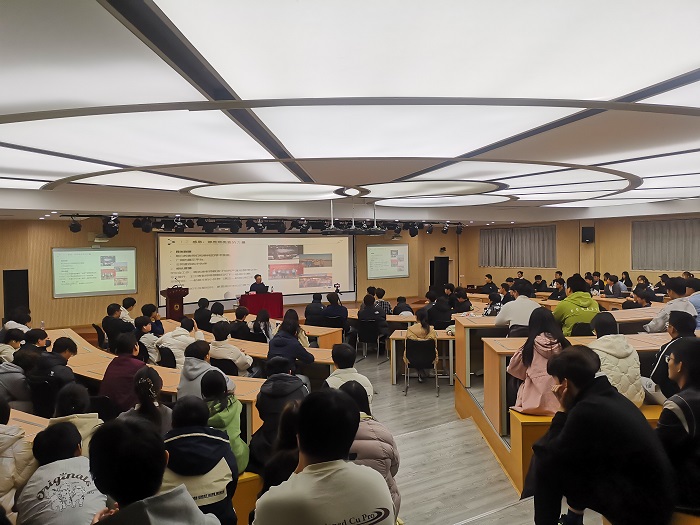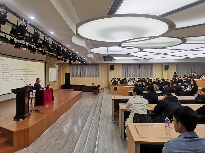 王爱伟以“从校园到星辰大海——我的成长突围之路”为题,结合个人成长经历,从“初心归来-我的校园与职场序章”“成长轨迹-从迷茫到坚定的突围之路”“干货锦囊-学业・时间・职业三重赋能”“感恩寄语-共赴未来之约”四个篇章回顾过往、启迪未来,强调了岗位所需的专业知识、能力素质和工作经验,从学业管理、时间管理、职业规划三个方面对同学们提出了提前布局未来的具体实施方案,叮嘱同学们要做一个懂得感恩、积极向上、有目标、敢行动、善复盘的追光者。在互动提问环节,王爱伟围绕专业技能提升、方向选择、考研与就业等多方面话题与同学们进行了深入交流,他说:“人生没有白走的路,每一步都算数,今天的我,离不开当年在母校踩过的坑、遇过的光,母校给我的不仅是知识,更是面对未知的勇气,十年前母校给我的,我愿尽绵薄之力带给大家。”