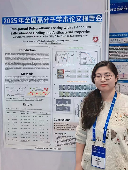 本届大会以“高分子科技与新时代发展”为主题,集中展示了我国高分子科学与材料领域的最新研究成果与前沿进展。会议期间,陈偲偲老师积极参与多项学术交流活动,重点关注增材制造技术在高分子材料中的创新应用及动态高分子研究前沿,并以墙报形式展示了其近期研究成果。