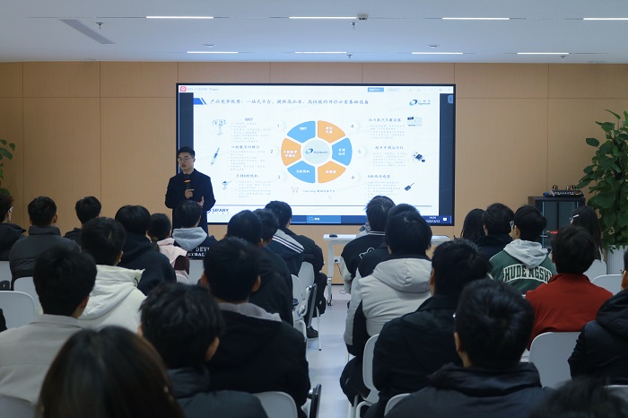在互动交流环节。同学们围绕口腔医疗器械行业技术发展趋势、新材料与新工艺应用、智能制造系统开发与运维、研发项目管理等主题主动提问,赛乐医疗技术专家分享了行业前沿动态与产品创新逻辑,人力资源部门负责人介绍了企业的人才需求、招聘标准和对在校生职业规划的建议。现场思维碰撞不断,为同学们解开了诸多关于专业学习、技能提升与职业发展的困惑。