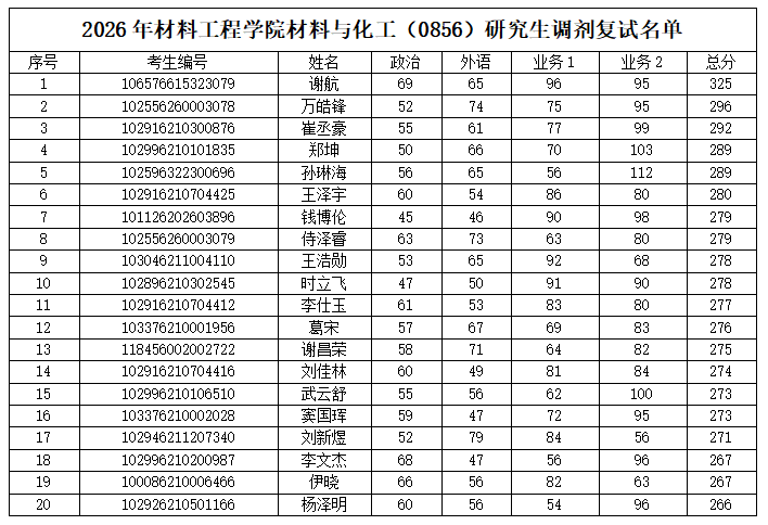 2026年麻豆做爱 材料与化工(0856)研究生调剂复试名单