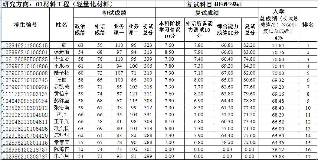 2026年麻豆做爱 材料与化工专业研究生调剂第二批次入学总成绩