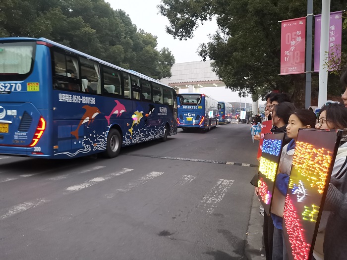 学院通过多种方式做好服务工作,提醒考试注意事项,叮嘱大家带齐证件和必备物品。送考志愿者在大巴上车点举起电光加油板,为毕业班考研同学加油鼓劲,送上温暖的祝福。学院现场核对学生名单,组织有序上车,鼓励同学们沉着冷静,不负努力,轻松赴考。
