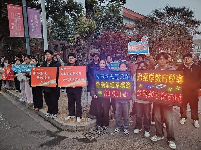 12月20日至21日,2026年全国硕士研究生招生考试正式开考。为了给奔赴考场的材料学子树立信心,保障顺利赴考,两日清晨,院党委副书记兼副院长占成、院学生会和团务部主要学生干部、非毕业班学生代表在校园育英路主干道为考研学生送考。